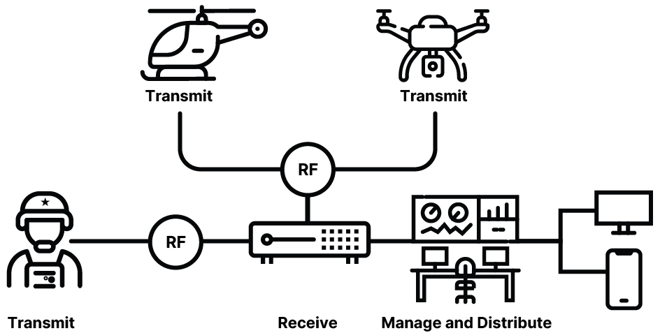 Vislink’s Wireless Video Camera Systems deliver a complete, end-to-end solution for capturing, transmitting, decoding and managing live video from the field, whether from helicopters of fixed wing aircraft, drones, body-worn cameras, mobile units or fixed installations. Built to meet the demands of defence, public safety, emergency response and security operations, these systems ensure that real-time video intelligence reaches command centres reliably, securely and with minimal latency – even in challenging, remote or contested environments.
